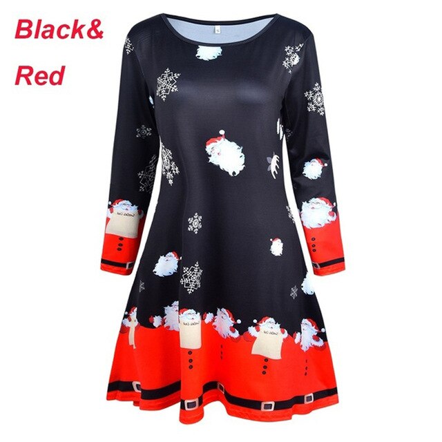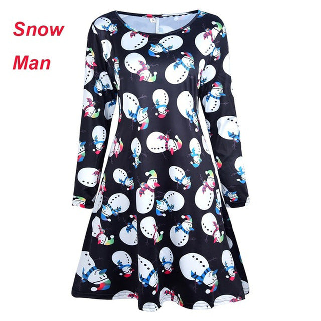 4XL 5XL Large Size Dress Casual Printed Cartoon Christmas Dress Autumn Winter Long Sleeve A -line Dress Plus Size Women Clothing